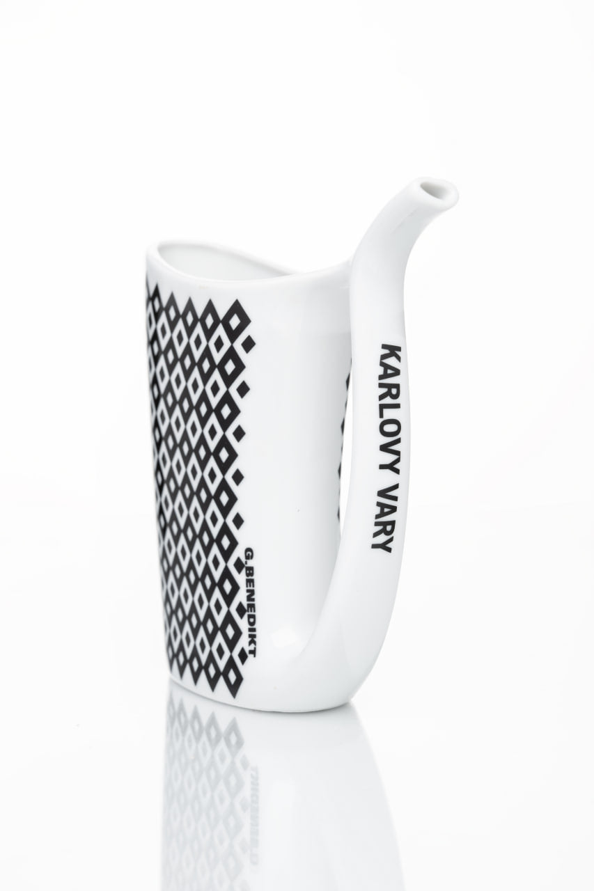 - Ikonický design karlovarského lázeňského hrnku s funkčním výlevkou na pití.