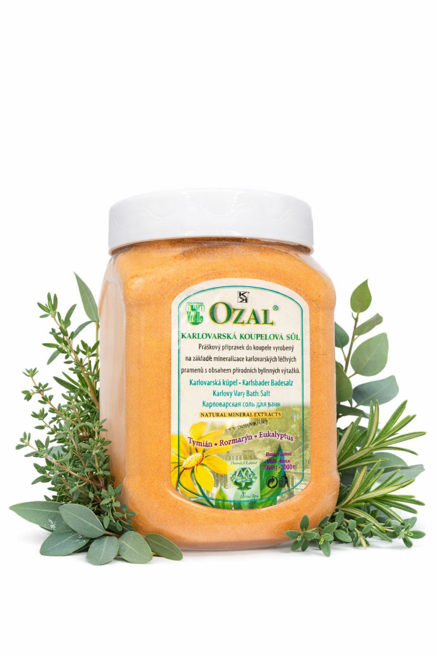 Tradiční minerální koupelová sůl s tymiánem, rozmarýnem a eukalyptem pro relaxaci, regeneraci a domácí lázeňské rituály