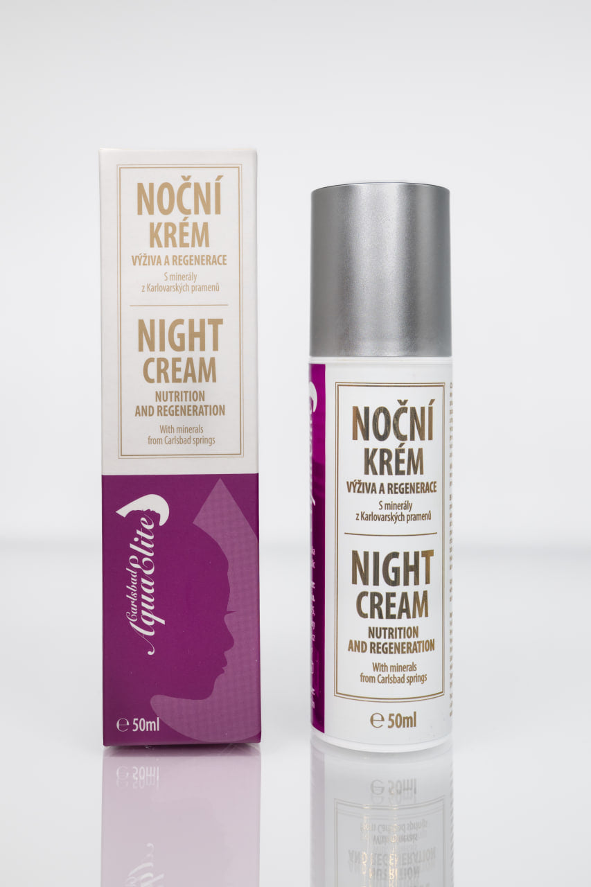 AQUAELITE Night Cream – Питание и Регенерация создан так, чтобы работать в гармонии с естественными ночными процессами восстановления кожи. Разработанный в Карловых Варах, он сочетает карловарские термальные минералы с насыщенным комплексом натуральных масел, помогая восполнить уровень влаги, укрепить защитный барьер и поддержать регенерацию во время сна.