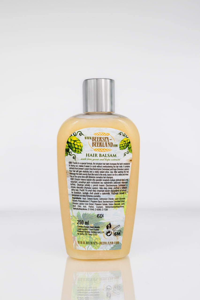 Кондиционирующий бальзам для волос с экстрактами пивных дрожжей и хмеля — для более сильных, блестящих и гладких волос.