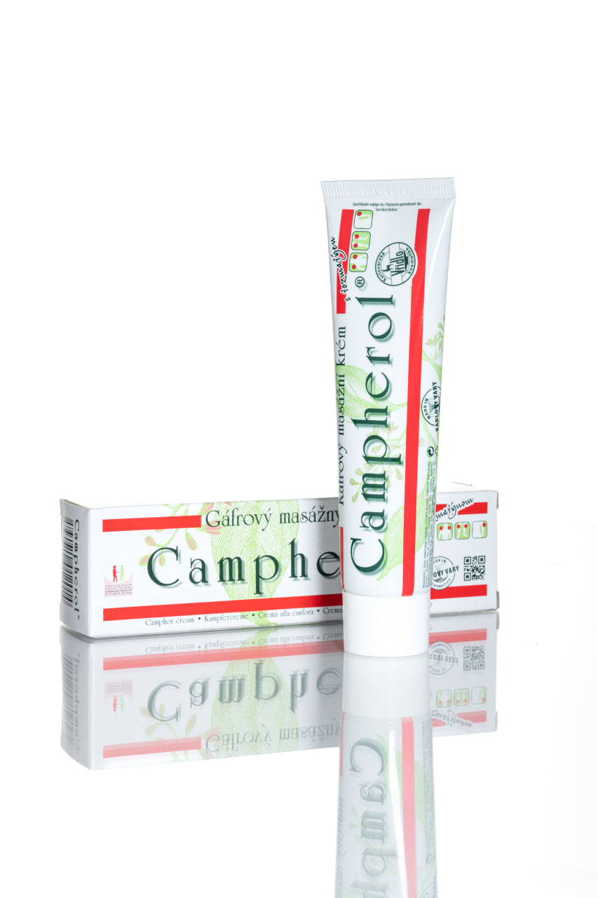 CAMPHEROL — традиционная чешская камфорная формула, разработанная для стимуляции кровообращения, снятия усталости и общего тонизирования. Натуральная камфора в сочетании с эфирным маслом розмарина помогает мягко разогреть кожу, уменьшить напряжение в мышцах и суставах и повысить эффективность массажа.